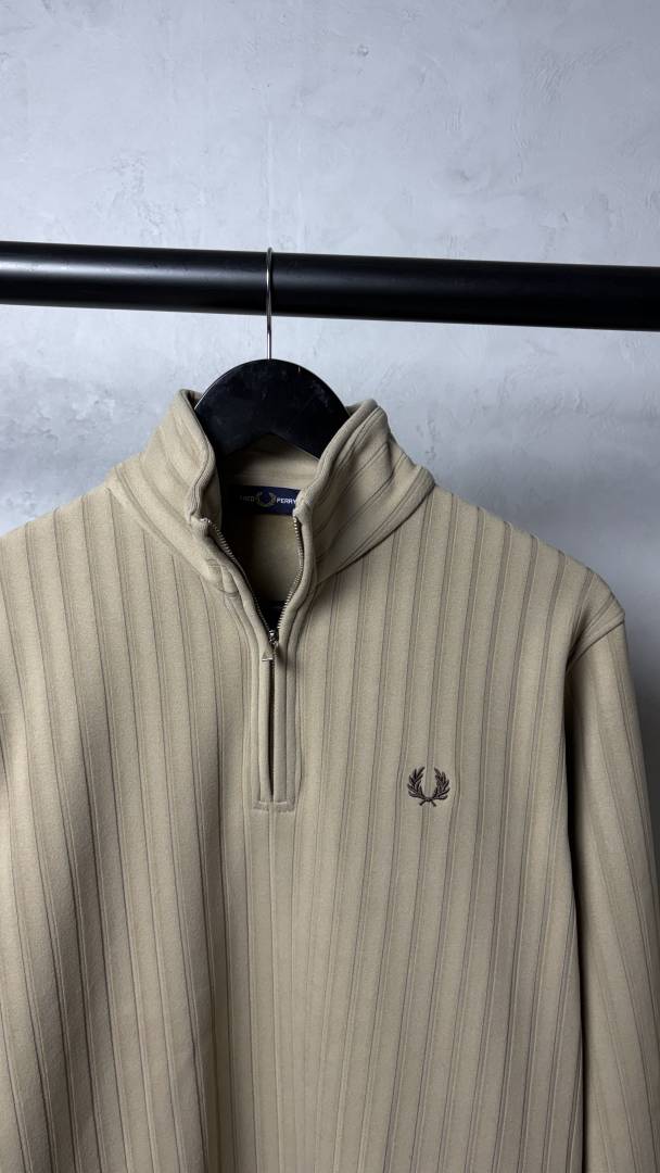 Fred Perr_y Ribbed Half Zip Sweatshirt Beige 1081