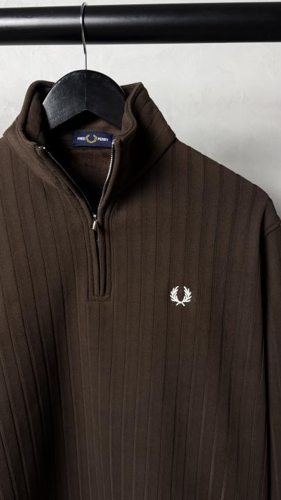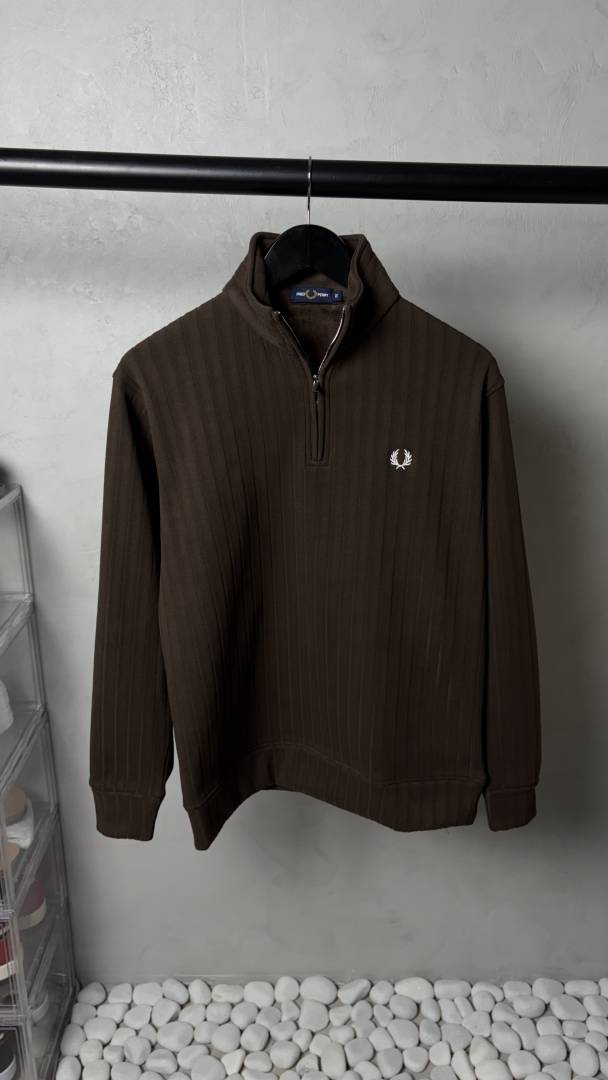 Fred Perr_y Ribbed Half Zip Sweatshirt Brown 1079