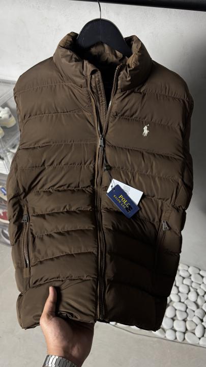A refined winter essential in deep brown, this quilted puffer jacket delivers warmth without bulk. Designed with a sleek silhouette, secure zip pockets, and classic Polo branding for a timeless, versatile look.